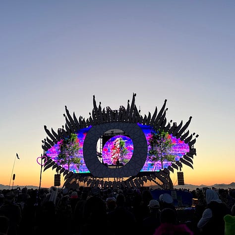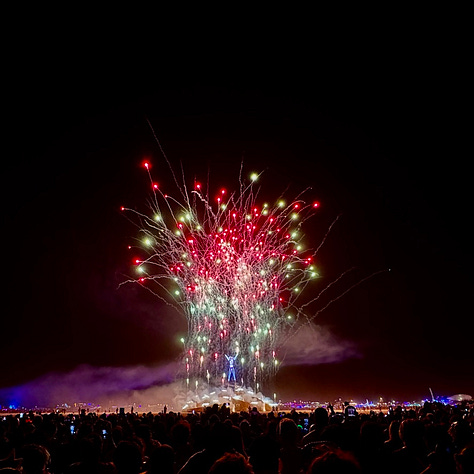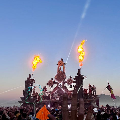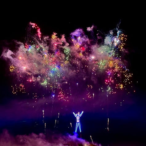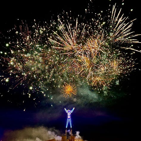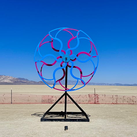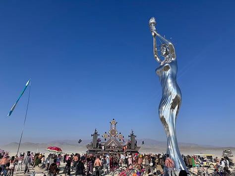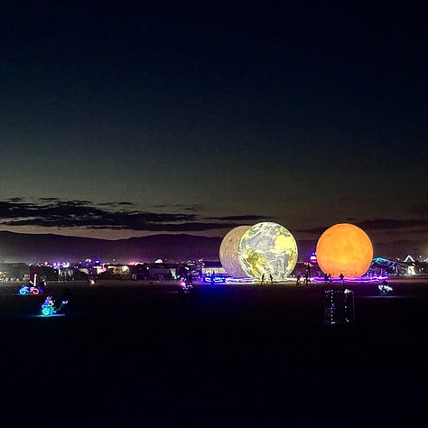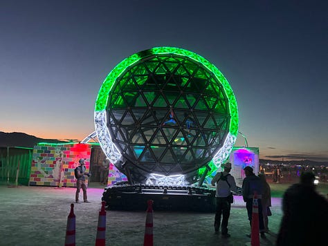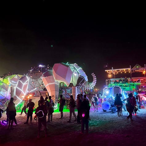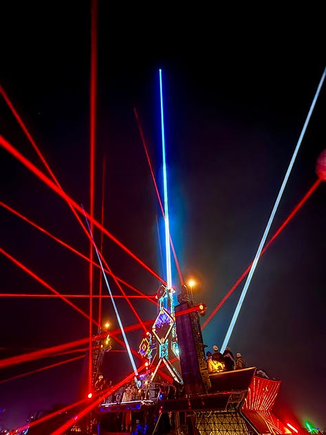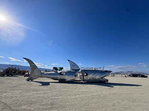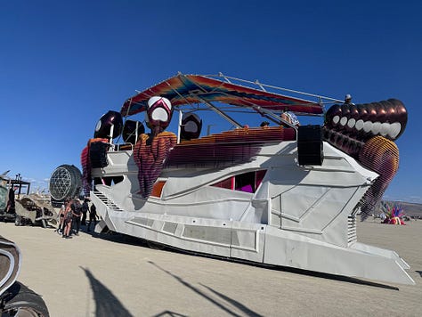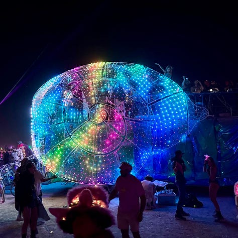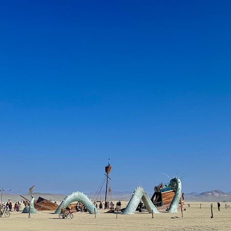 The premise of a festival without a focused center stage or schedule has enchanted me for 20 years, since I first learned of Burning Man (though Burning Man is not a festival). And the art looked off the charts. The timing of Burning Man is most inconvenient for parents with kids in school (the week before Labor Day), so it took a while for the stars to align. With one kid safely ensconced in college and the other starting her sophomore year of high school, this seemed like an “off-year” as a parent and an “on-year” to burn (in the Burning Man parlance). Buying a ticket, packing for the event, and getting to Black Rock City take significant planning, preparation, and endeavor, though nowhere near as fascinating as the event itself (if you have questions, please message me). Reviews and pontifications about Burning Man 2024 abound online, and I hereby add to that noise.