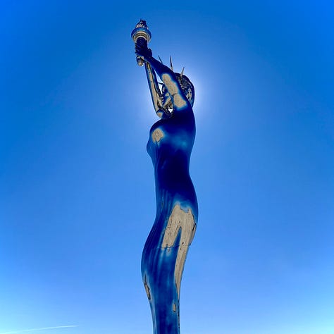 I spoke with the creator of “Liberty,” and it had a political message but far less charged than “I’m Fine” or “Nova Heaven.” "Liberty" was a stunning and gigantic stainless steel Statue of Liberty with both hands holding the torch. You could see it shimmering from almost anywhere in Black Rock City, and it was simply awe-inspiring that this artist brought this here. I hope it has a life on display after the event.